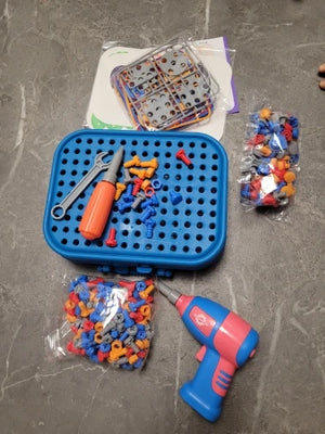 The kit comes with a variety of parts and tools, allowing for endless assembly combinations and creative play.